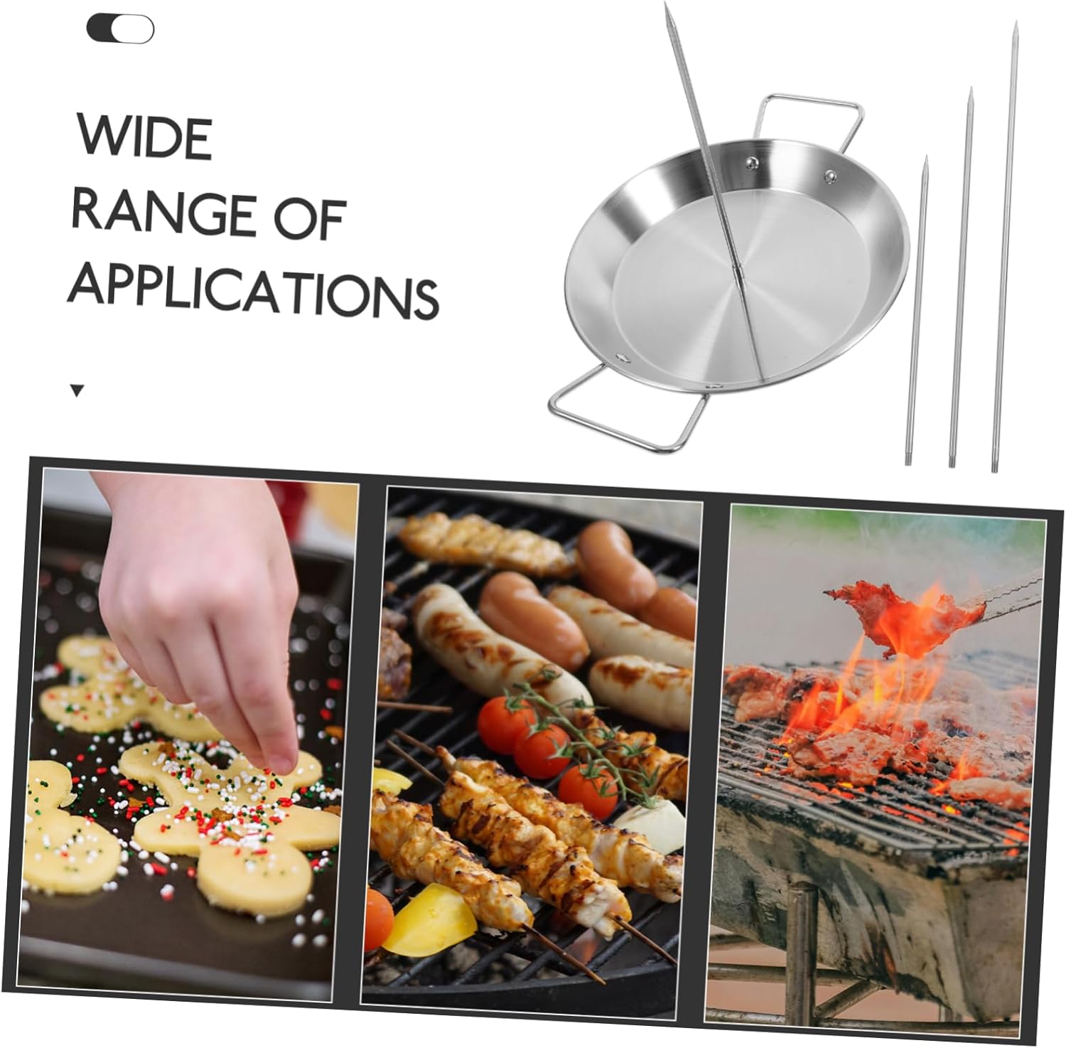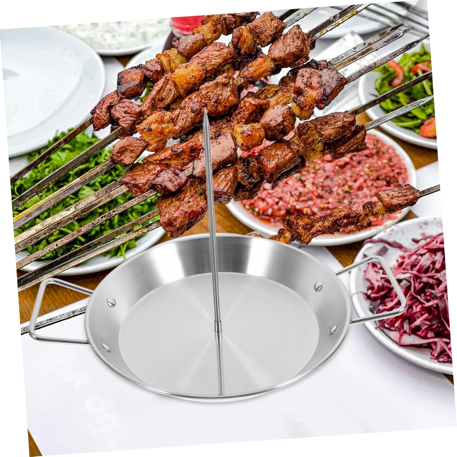 Package Include 1 x pan 3 x skewers 2 x brushes Features -Vertical Design: Vertical design optimizes grilling space and even cooking for a variety of foods vertical skewer pan. -Wide Applications: Versatile design allows you to grill a wide range of ingredients, from vegetables to meats, catering to diverse culinary tastes skewer pan. -Size (black brush):26.00X4.50X1.00cm/10.22X1.77X0.39in grill skewer rack -Color:Assorted Color vertical skewer for grilling -Practical Brush: Comes with an oil brush, making it easy to apply oil evenly on your food, enhancing flavor and preventing sticking vertical skewer. - Material: Made from stainless steel, this Skewer Pan is durable, and easy to clean, ensuring use stainless steel vertical screw bbq skewers. -Detachable Design: Equipped with detachable skewers, allowing you to adjust the grilling height to suit different of food and cooking preferences skewer rack for grill. -Material:Stainless steel bbq skewer rack -Size (red brush):20.50X3.20X0.80cm/8.06X1.26X0.31in skewer grill rack -Size (pan):22.50X22.50X3.00cm/8.84X8.84X1.18in vertical grill plateGoods Descriptionvertical grill plate Elevate your grilling experience with our Stainless Steel Vertical Skewer Pan.vertical skewer The included oil brush makes basting easy, enhancing the flavor of your grilled dishes.stainless steel vertical screw bbq skewers Designed for convenience, its vertical structure saves space and even cooking