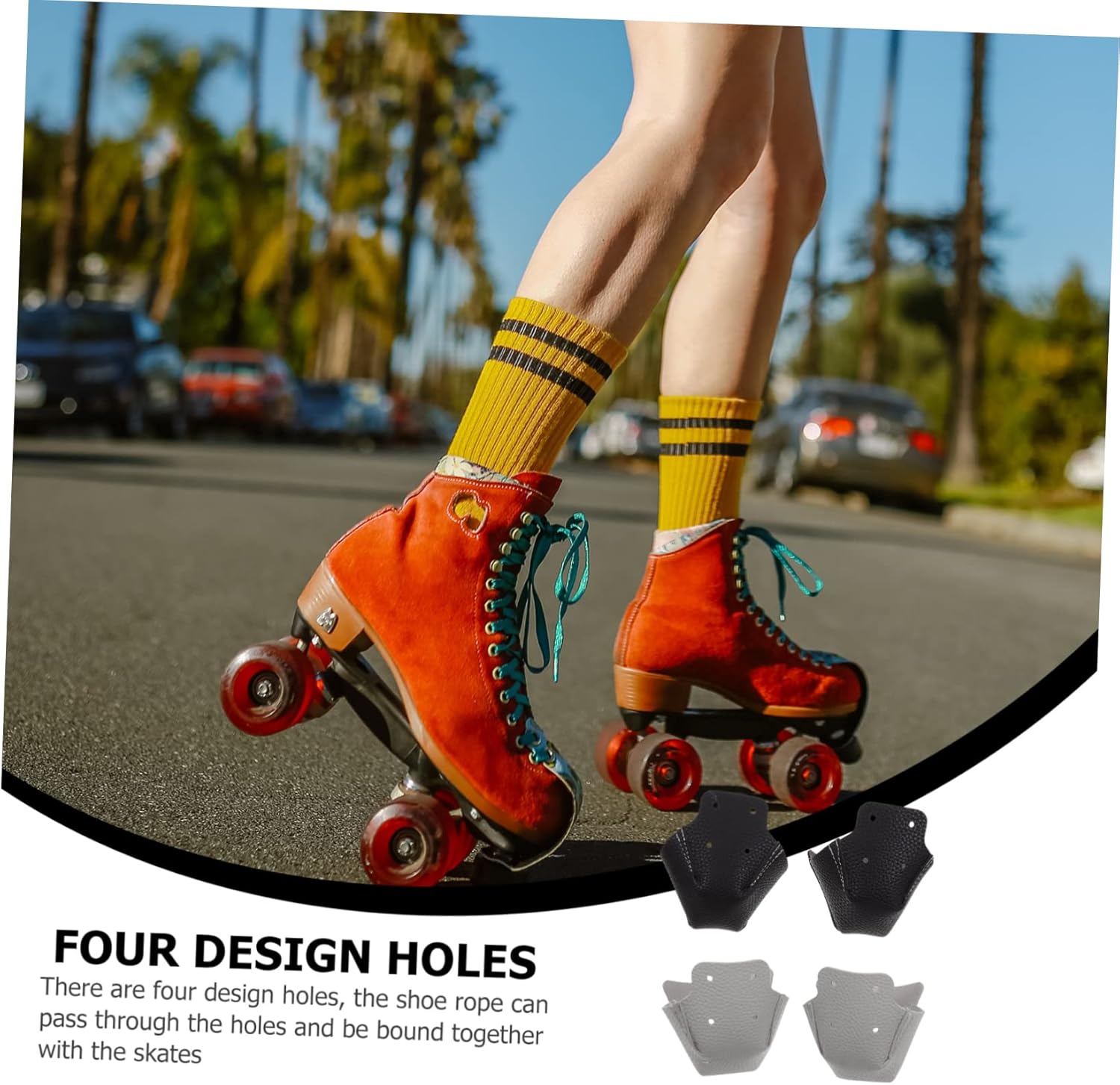 Package List 4 Pairs x Skating Toe CapsGoods Informationroller skates for kids - It is designed in shape of toe cover, which can be fixed in place and perfectly matched with the roller skating shoes.Roller Cap Protectors 50X9.Protective Sleeve for Skates Toe - The leather toe protector is suitable for any roller skates and skating shoes.Skates Toe Caps 54inch.Roller Skates Front - There are four design holes, the shoe rope can pass through the holes and be bound together with the skates.Ice Skates Accessory 52X3.sports accessories 50X9.Leather Skates Toe Covers Are you looking for professional, yet affordable skates toe protective covers? Are you in search of a sturdy, trustworthy tool at once? If yes, look no further! Our professional toe protective cover must meet your needs.four wheel roller skates - Size: About 11.Shoes Protector 73X3.Skate Toe Protective Cover - Material: Leather.Roller Skates Accessory It is one of the for you.roller accessories 00cm/4.Roller Skates Features - Color: Black, grey.Ice Skates Front Caps - These toe caps can well protect the skates heads, simple and practical.Skates Toe Guard - Made of material, great processes, durable for long-lasting use