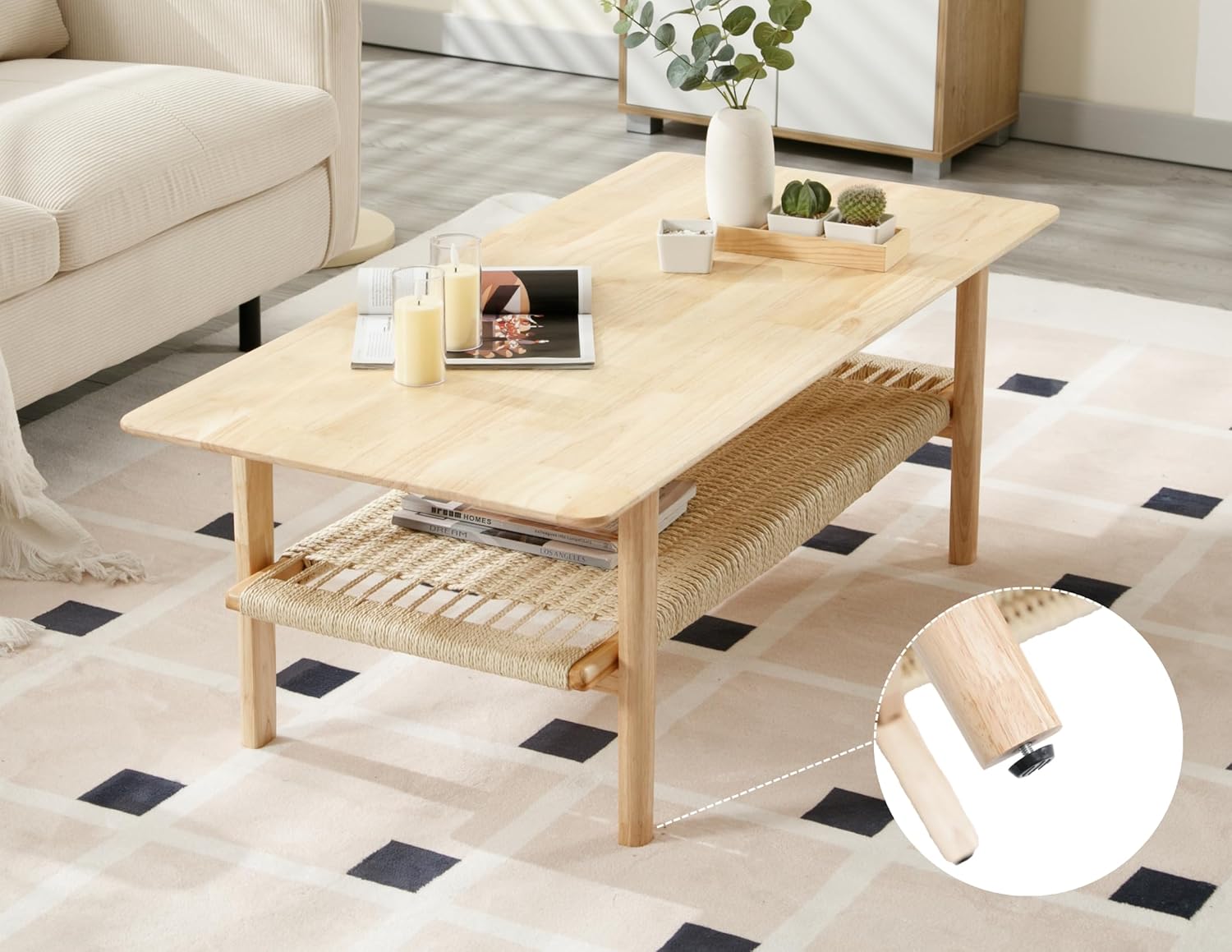 • [Durable & Stable]Crafted from a solid wood frame, this rectangular coffee table exudes natural charm with its wood color and texture. The robust construction can hold up to 200 lb, making it a reliable choice for everyday use in your living room. Feel free to display your books or decorations on it!