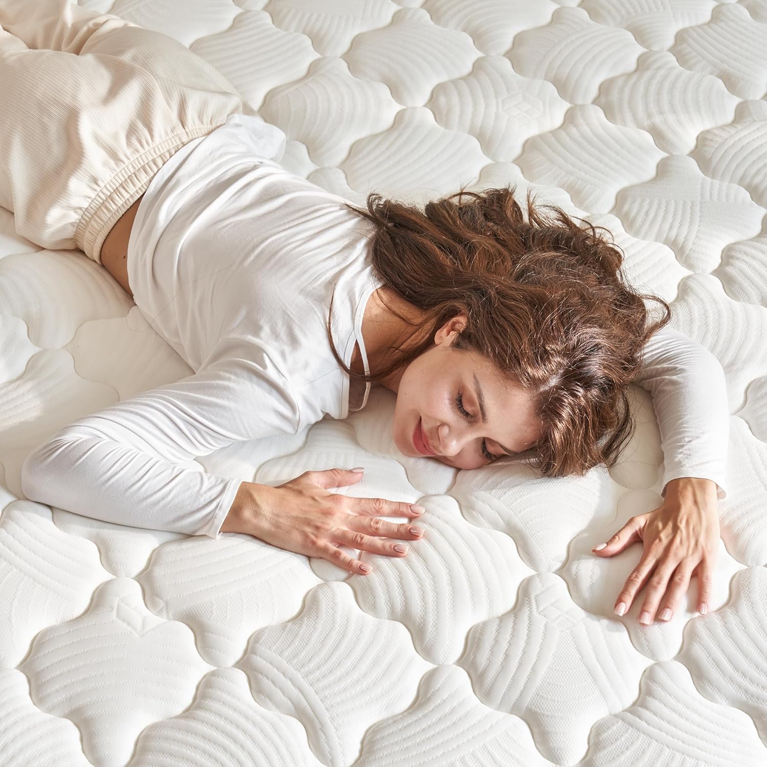 【Full Size Support & Pressure Relief】12" Full size hybrid design with memory foam + pocket springs for balanced comfort.Medium-firm feel adapts to all sleep positions - ideal for back pain relief.
