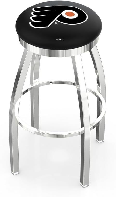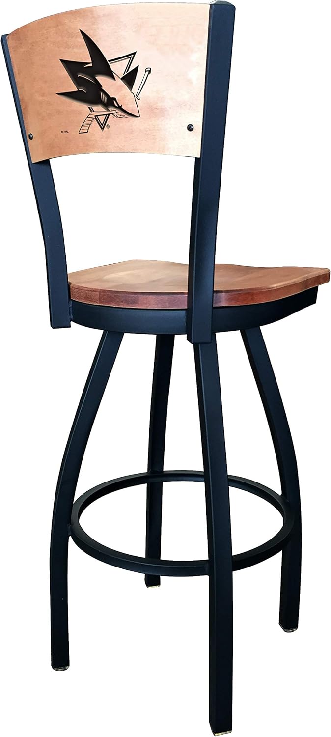 Made for the ultimate sports fan, you will be proud to show where your loyalty lies with this impressive Officially Licensed stool from the Holland Bar Stool Co. Add a touch of class with this L038 Laser Engraved, swivel logo stool that has a medium finished wood back that doesn't just add comfort, but sophistication. The back is first laser engraved with your teams logo on state of the art equipment and then finished and sealed to ensure the best quality product possible. You won't find a higher quality logo stool on the market. The frame is made from commercial quality 16 gauge, 1 1/4 inch tube steel with solid Mig welded joints to strength and durability. The powder coated finish resists chips and scratches and ensures a long-lasting, rich appearance. The cushion seats are of the highest quality as well, utilizing a breathable, commercial grade vinyl. At the heart of the cushion is 2 1/2 inches of highly-dense, US made foam that provides maximum support and will not breakdown in a couple years. If you're going to finish your bar, game room, or man cave do it right- with a logo stool made in the USA by the Holland Bar Stool Co.