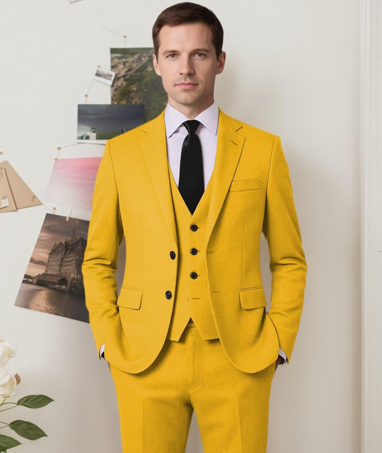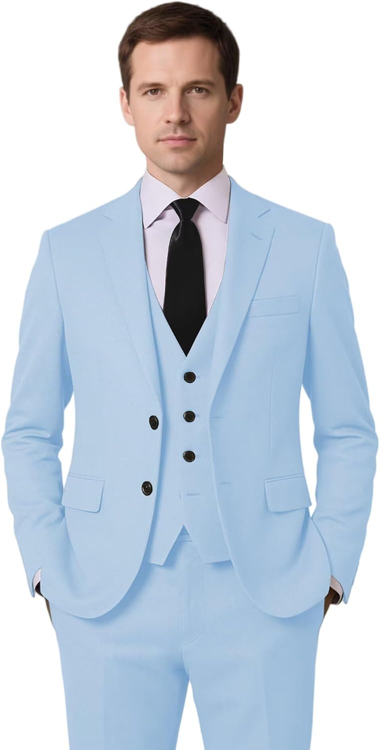 3 Piece Mens Suits Slim Fit Two Button Blazer Tuxedo Suits for Men The mens suits regular fit made of high quality fabric with modern and stylish design will bring you tons of compliments at any occasions. Slim fit cutting makes you look perfect and professional. Product Information: 1. High Quality Fabric: The mens suits slim fit 3 piece are composed of polyester and rayon. 2. Color: Black 3. Size: XS 4. Wash Care: Hand wash or dry cleaning, hanging to dry and steam ironing. When you are not wearing it, please keep it hanging. 5. Occasion: This suits for men are perfect for casual, formal, business, meeting, wedding, dating, prom, party and graduation, Christmas dinner. 6. Package Include: 1 suit jacket + 1 suit vest + 1 suit pants + 1 tie We are dedicated in providing our customers with comfortable and high quality prom suits and also continuously optimizing our products to meet higher demands. If you have any questions, please do not hesitate to contact us, we will try our best to help you solve the problems.