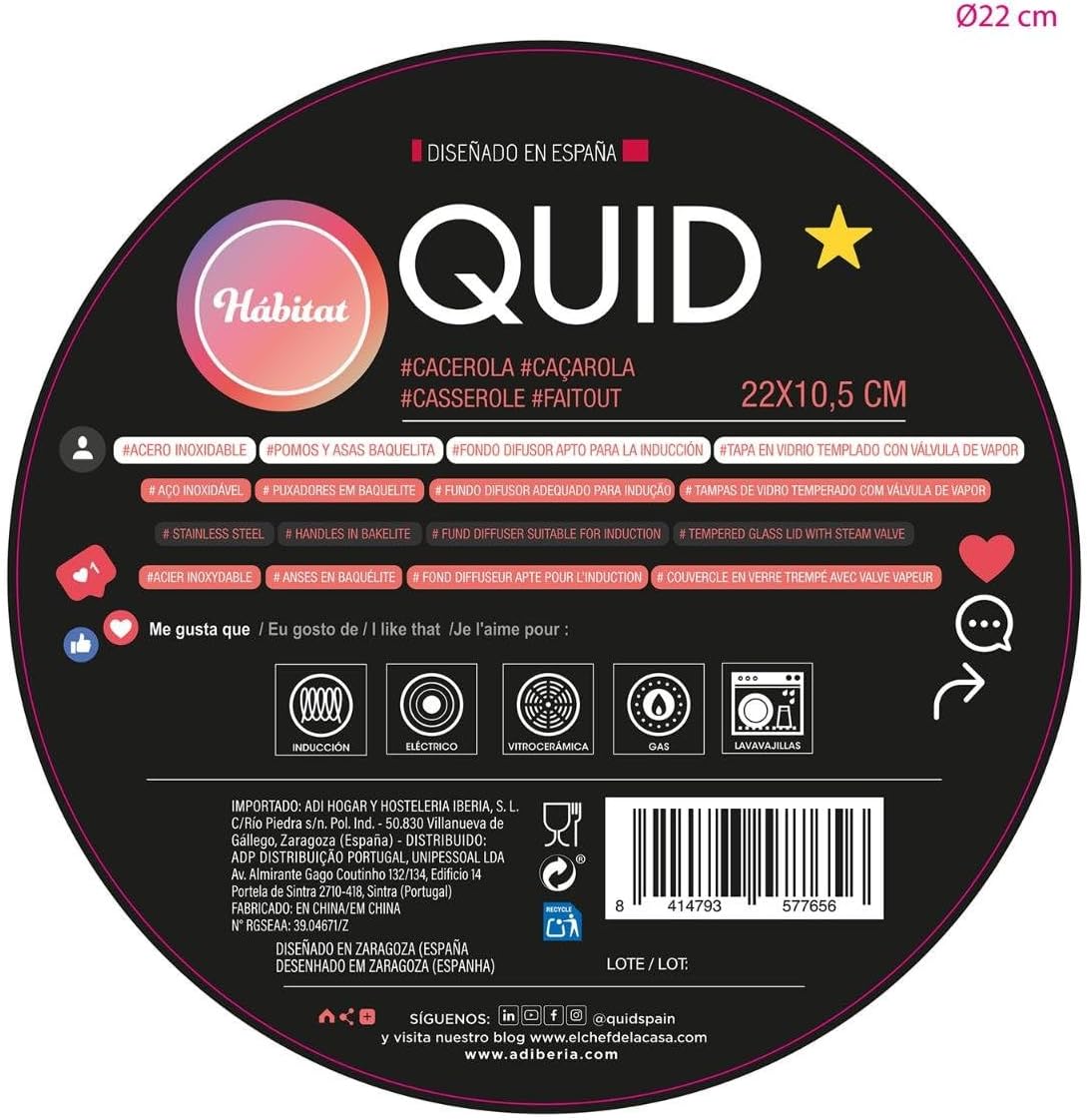QUID Habitat – Stainless Steel Saucepan 22 x 10.5 cm Suitable for ceramic hobs, suitable for induction, electric, gas safe, dishwasher-safe