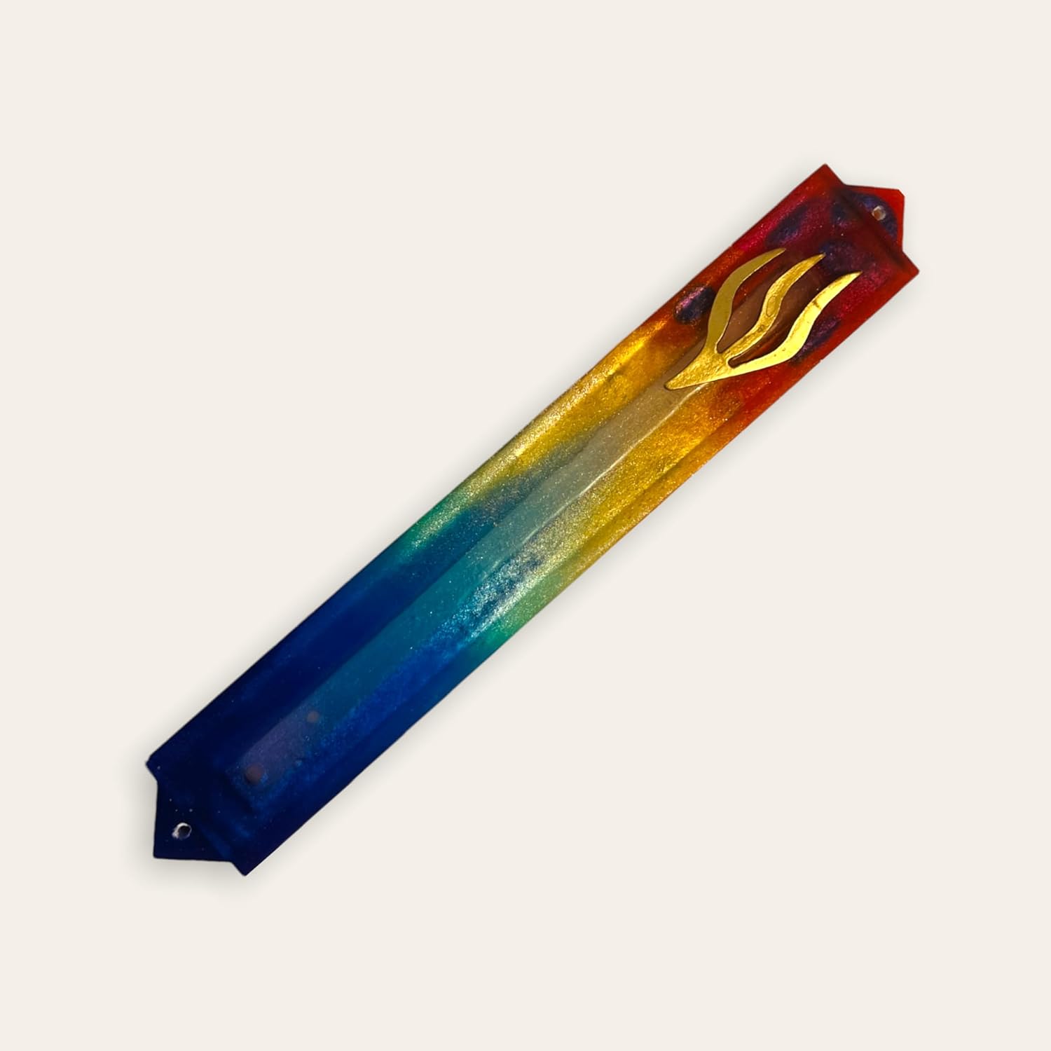 Discover the beauty of our Rainbow Textured Epoxy Resin Mezuzah Case, a perfect blend of tradition and modern artistry. This Pride Mezuzah, adorned with a Curved Gold Shin, is not just a Judaica Gift but a symbol of diversity and storytelling. Each mezuzah is infused with high-quality Epoxy Resin, showcasing a spectrum of colors and elements that narrate a captivating story. Handcrafted with care, every piece boasts its own distinctive technique, unique characteristics, and the charming imperfections of handmade art. This mezuzah is an ideal Jewish Gift, embodying both beauty and spiritual significance.