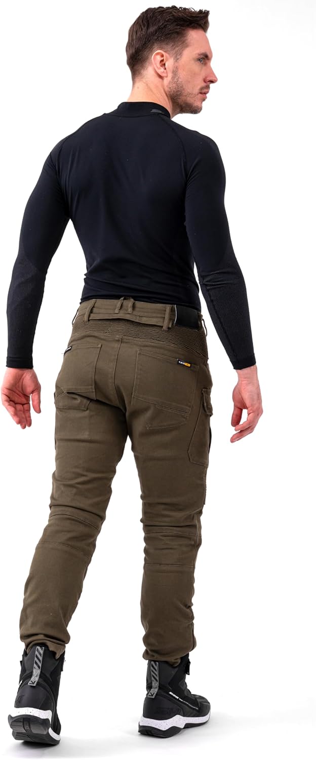 Introducing the SHIMA GIRO 3.0 – the ultimate motorcycle trousers that redefine safety, comfort, and style for riders everywhere. With cutting-edge design and materials, the GIRO 3.0 sets new standards in motorcycle apparel, blending innovation with the dynamics of motorbike life. Crafted from TrioteX, an innovative weave of polyamide and polyester fibers, the GIRO 3.0 offers unmatched abrasion resistance and durability, safeguarding you on every ride. This robust material, combined with the addition of lyocell, ensures excellent thermoregulation across a variety of weather conditions, making these trousers perfect for both sunny rides and cooler adventures. The GIRO 3.0 features SHIMA AirForce level 2 FLEXX knee protectors, delivering superior protection with their unique honeycomb design for enhanced airflow and elasticity. This advanced protection system, complemented by additional hip protectors, boosts your safety on the road, ensuring peace of mind in any riding scenario. Designed for the ultimate riding experience, these motorcycle trousers boast ultra-high elasticity, ergonomic 3D construction, and accordion panels that offer full freedom of movement and a flawless fit. The slightly elevated waist from the previous model enhances coverage and comfort, making long rides more enjoyable. These trousers come equipped with practical design elements like spacious cargo pockets and a handy D-loop key holder, merging functionality with style. Available in two essential colors—classic black and versatile khaki—and in both classic or extended leg versions, the GIRO 3.0 suits every rider’s preference. Step into the GIRO 3.0 motorcycle trousers and experience the blend of high functionality, protection, and comfort. Perfect for the fashion-forward biker, these trousers are not just gear—they're a statement. Whether you're navigating the urban jungle or cruising on open roads, the GIRO 3.0 is your ultimate companion, ready to elevate your riding to the next level.