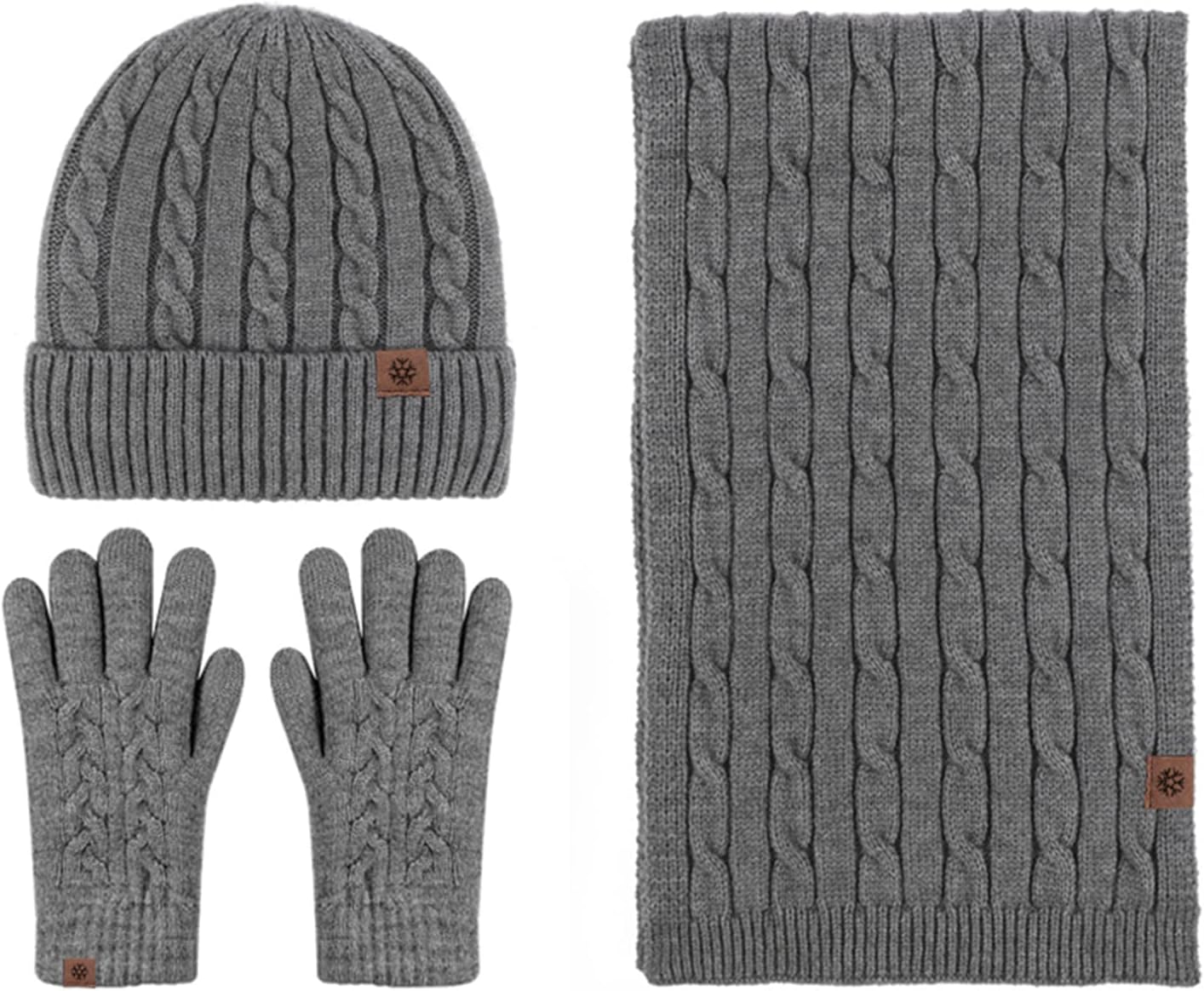 LumiSyne, deepest zeal you crush all your life.PRODUCT DETAILS- Material: 52% acrylic + 28% nylon + 20% polyester- Season: Autumn and Winter- Set includes: Beanie hat; Long scarf; Gloves- Unisex style and one size fits most people- Recommended head circumference: 54-58cm- Highly sensitive touch screen gloves- Beanie with soft and warm coral fleece lining- Solid colour scarf with retro cable knit patternCARE INSTRUCTIONS- Dry cleaning or hand washing.- If you need machine wash,please use the wash bag.- Use warm water below 30 degree and neutral detergent.BRANDLumiSyne, a leading fashion brand dedicated to the high quality men and women clothing accessories since 1986.We cooperate with highly qualified designers, and offers a wide variety of choices for customers.Our product create an extraordinary style while offer a reasonable price, our brands sell well in Europe, North America, Asia.CUSTOMER SERVICEIf you have any question or dissatisfaction with our products, please contact our service team, we'll be always there for you.We will make every effort to provide our customers with a guaranteed shopping process.