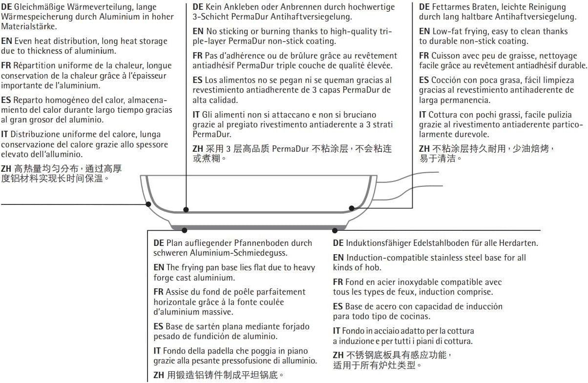 Product Description WMF Permadur Premium Cast Aluminium Frying Pan is made in Germany with PermaDur non-stick coating. WMF offers a five-year warranty for the extremely durable seal. The frying pan base is suitable for all types of cookers, especially for induction. The ergonomically shaped handle lies comfortably in your hand and has a flame protection. Thanks to its excellent non-stick properties, the PermaDur Premium frying pan is ideal for delicate dishes like fish or recipes using egg. It measures 28 cm diameter by 5.5 cm height. Set Contains: 1 x Frying Pan