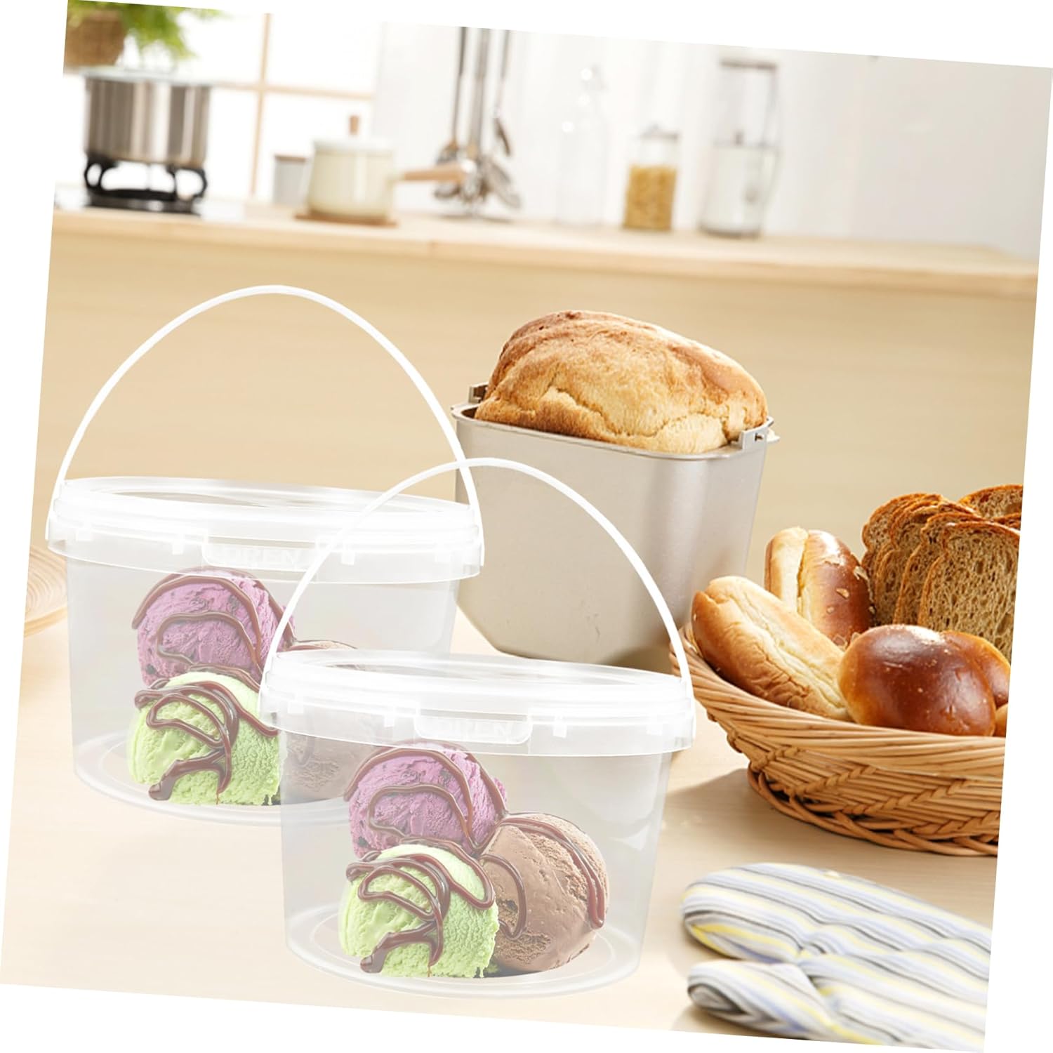 Package List 8 x Storage Buckets Characteristics -Capacity: 4 L lobster storage containers. -Material:PP reusable food buckets -Size:22.50X22.50X15.00cm/8.84X8.84X5.89in ice cream containers for homemade ice cream -Color:Transparent lobster box - This bucket is made of sturdy PP reusable material, which can be used for long time reusable yogurt bucket. - Portable and lightweight, easy and convenient to carry, so convenient and to use lobster container. - Storage bucket can be used as a water bucket, lobster bucket, fishing bucket, pet food bucket and much more ice cream storage containers for freezer. - This storage bucket with lid is a helpful tool for storing pet food, lobster, water, sand and more lobster bucket for home. - Storage bucket is simple and in use, give you a pleasant using experience ice cream container.Goods Descriptionreusable food buckets If you are looking for a professional and storage bucket, then your research is over here.reusable yogurt bucket Adopted of good material, it is and for long time use.ice cream holders It is not easy to get deformed and bring you much convenience.lobster buckets with lids because our product can meet your need